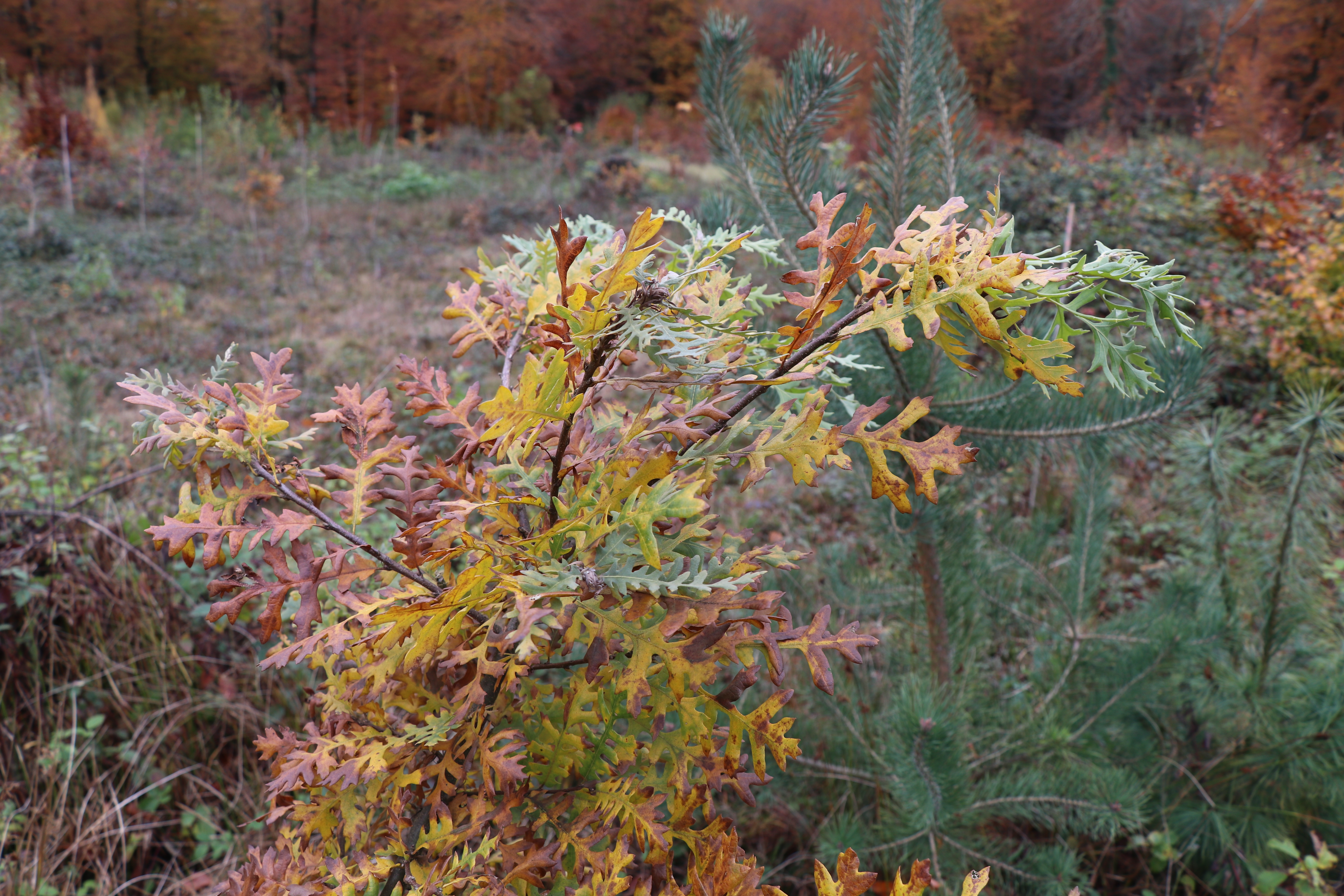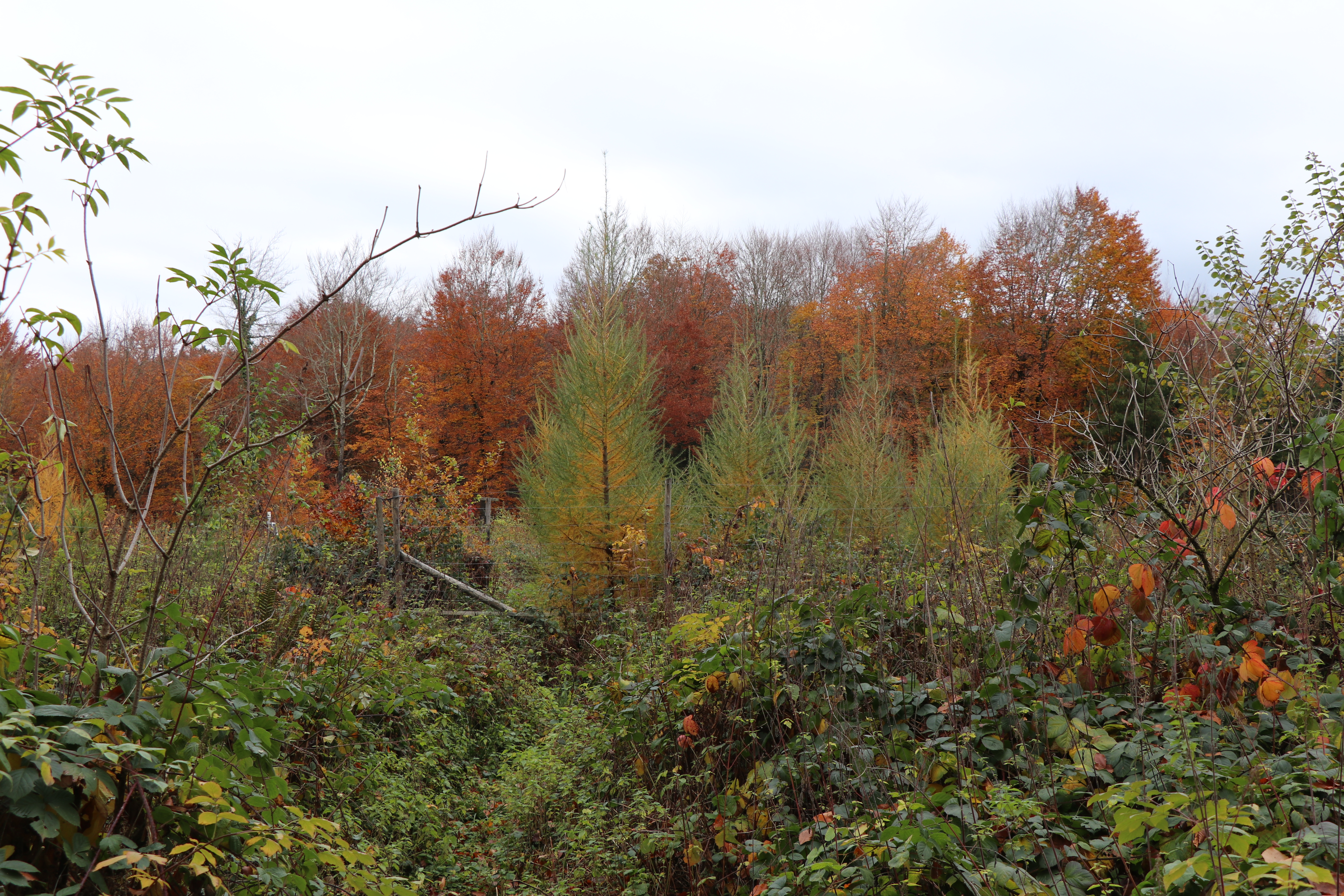 Als die Sonne tiefer sinkt, glitzert das Licht auf den feinen Nadeln der Douglasien. Zwischen Brombeerranken und buntem Laub wird sichtbar, worum es hier geht: Den Wald von morgen verstehen – heute.