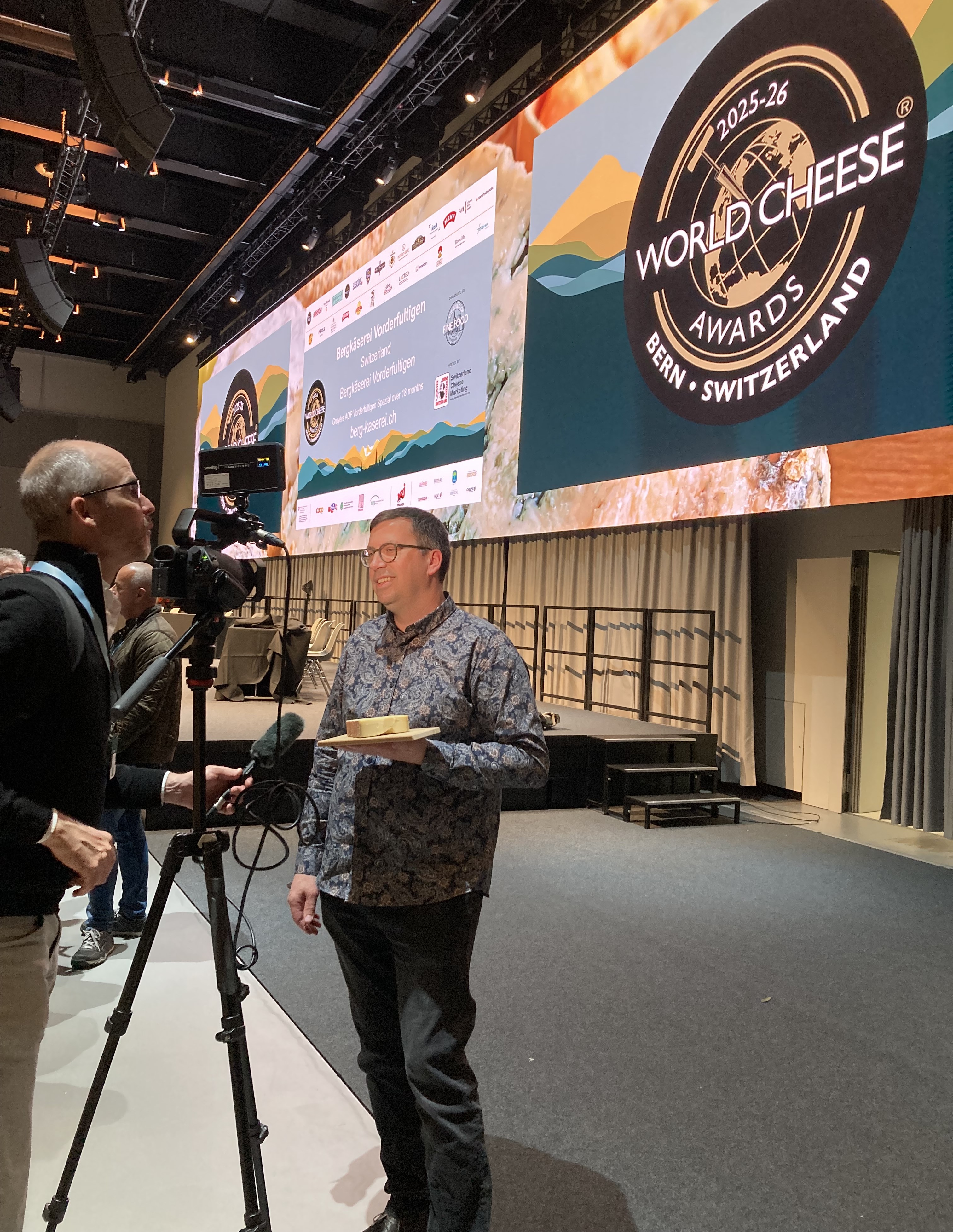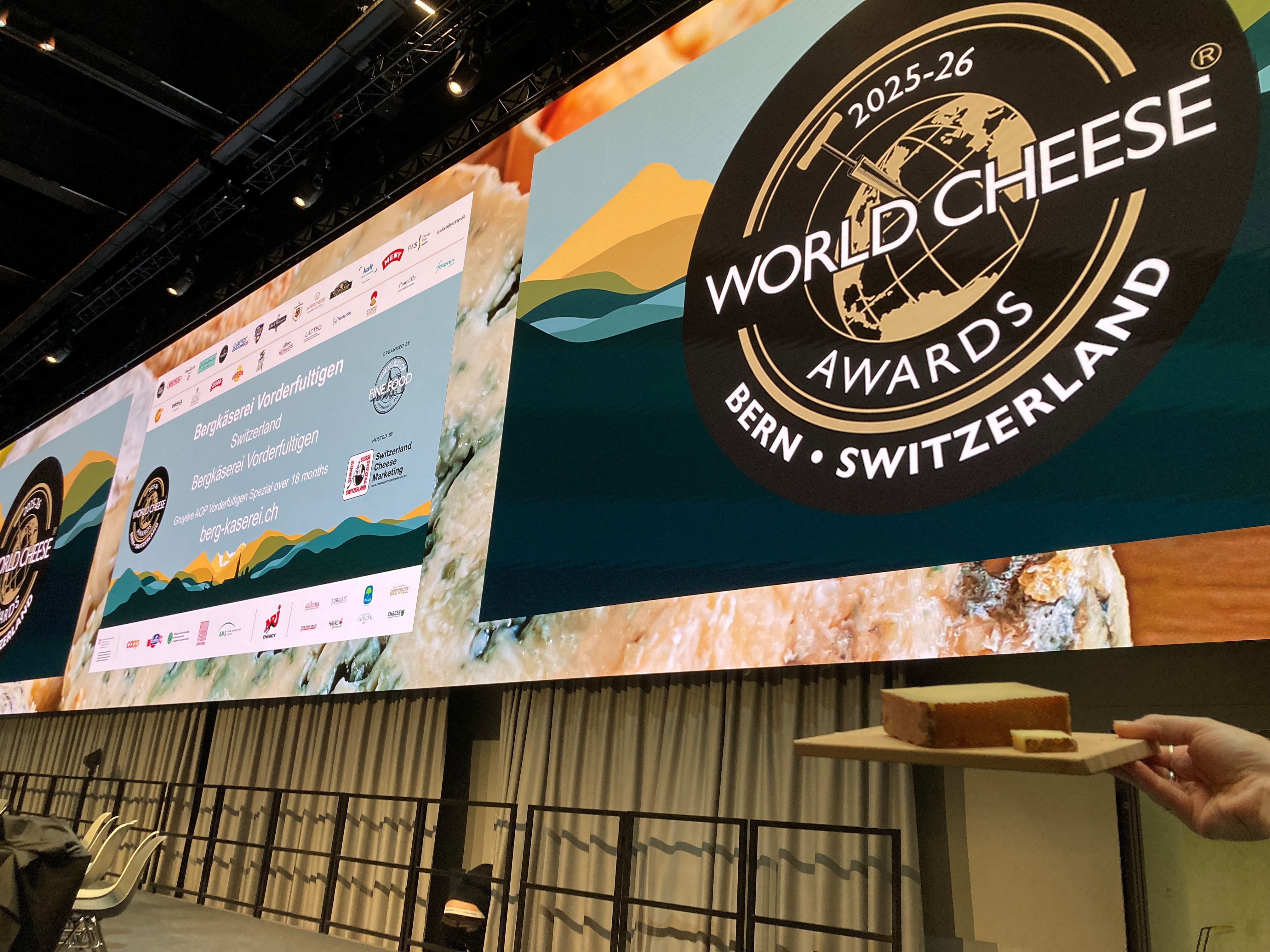 Die 37. Ausgabe der World Cheese Awards ist die erste, die in der Schweiz stattfindet. Und auch der weltbeste Käse kommt aus der Schweiz: Le Gruyère AOP Spezial der Bergkäserei Vorderfultigen von Käser Pius Hitz setzte sich in Bern gegen 5’243 konkurrierende Käse durch. Aus derselben Käserei hatte bereits 2022 in Wales ein Gruyère AOP den Weltmeistertitel errungen.