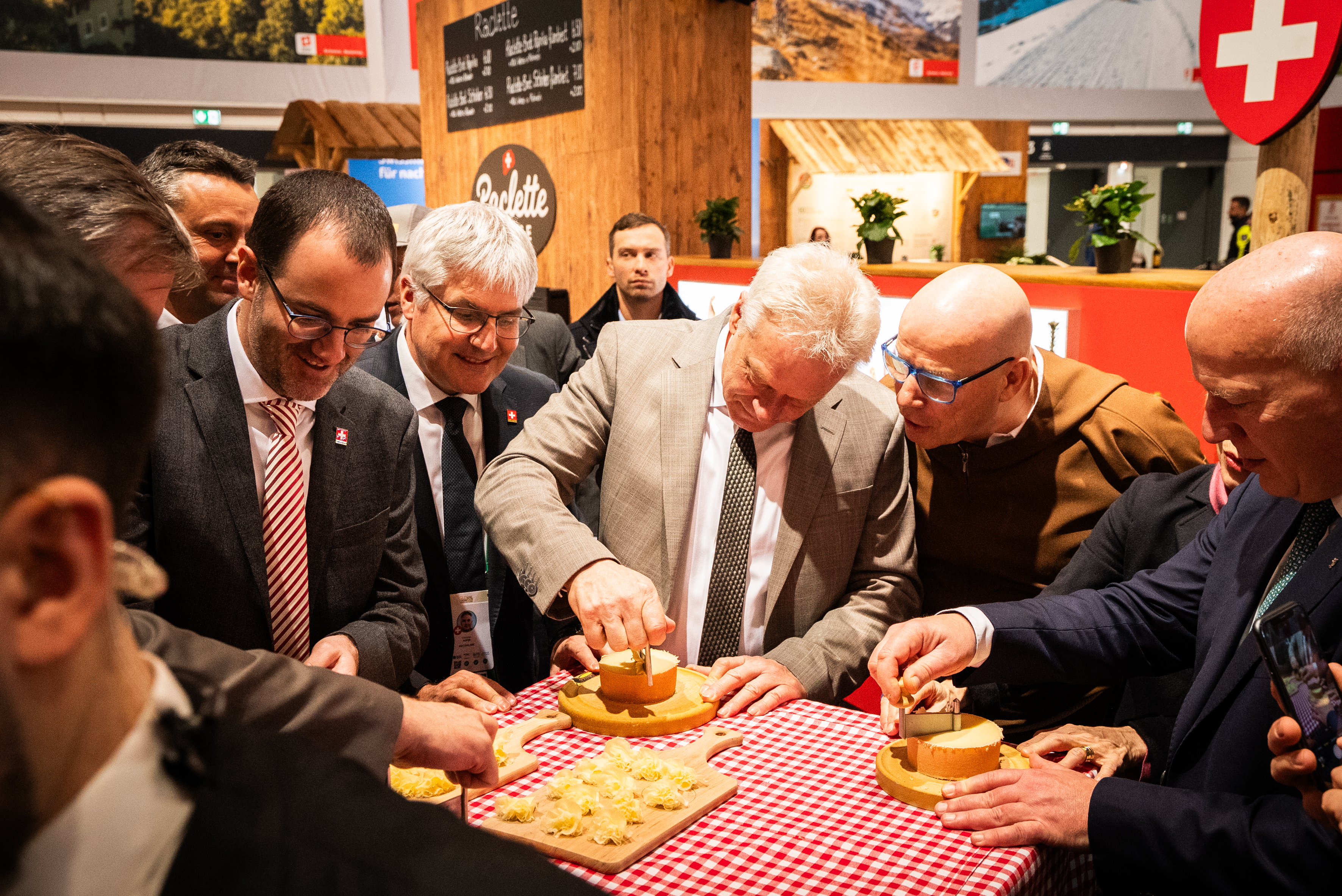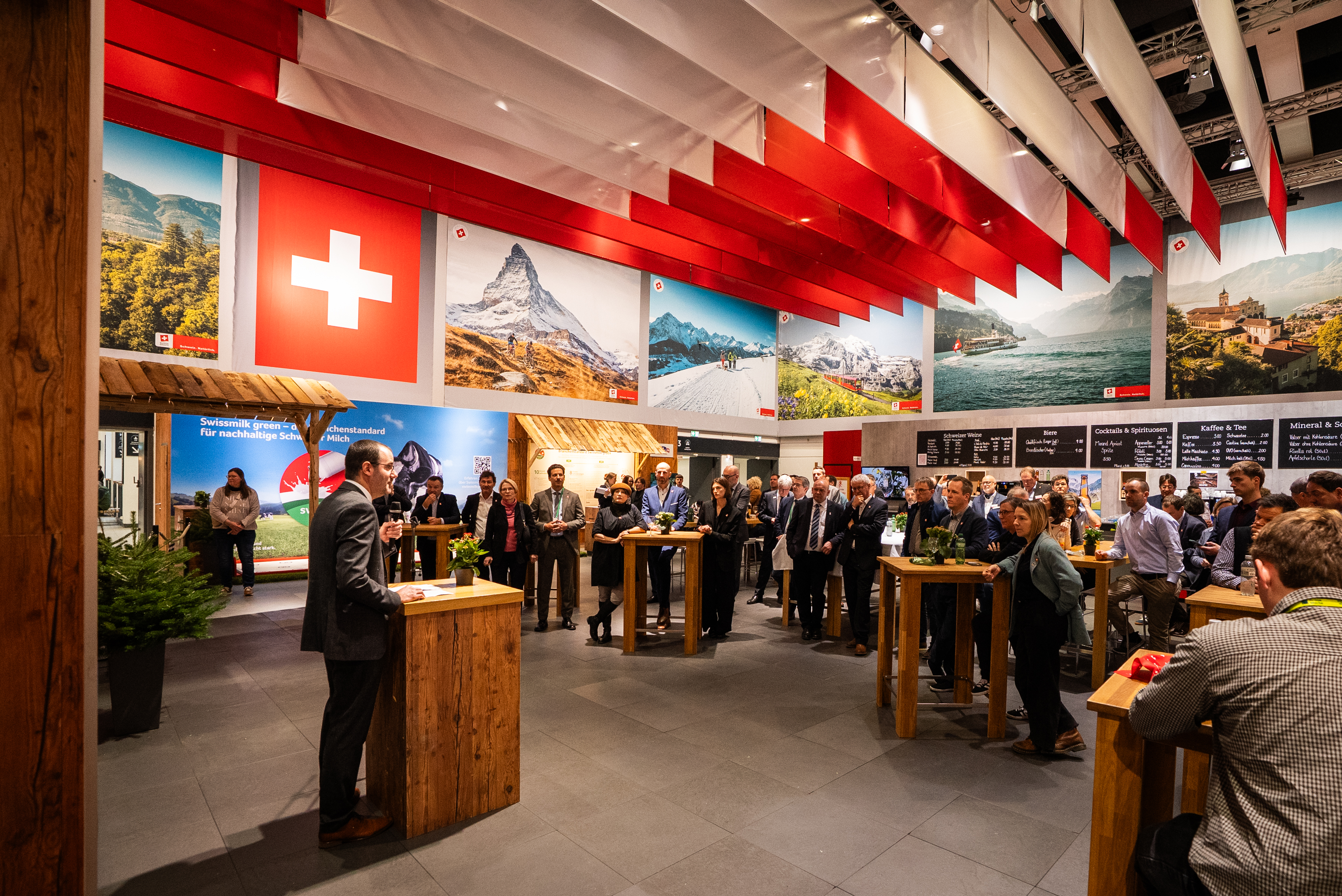 Bei der offiziellen Eröffnung des Schweizer Standes gingen Michel Darbellay, Präsident Agro-Marketing Suisse (AMS), Nationalrat und Präsident des Schweizerischen Alpwirtschaftlichen Verbandes Ernst Wandfluh, Milchproduzenten-Präsident Boris Beuret sowie Christian Hofer auf die Bedeutung der Messe für die Schweizer Land- und Ernährungswirtschaft sowie die aktuellen Herausforderungen der Agrarbranche ein.