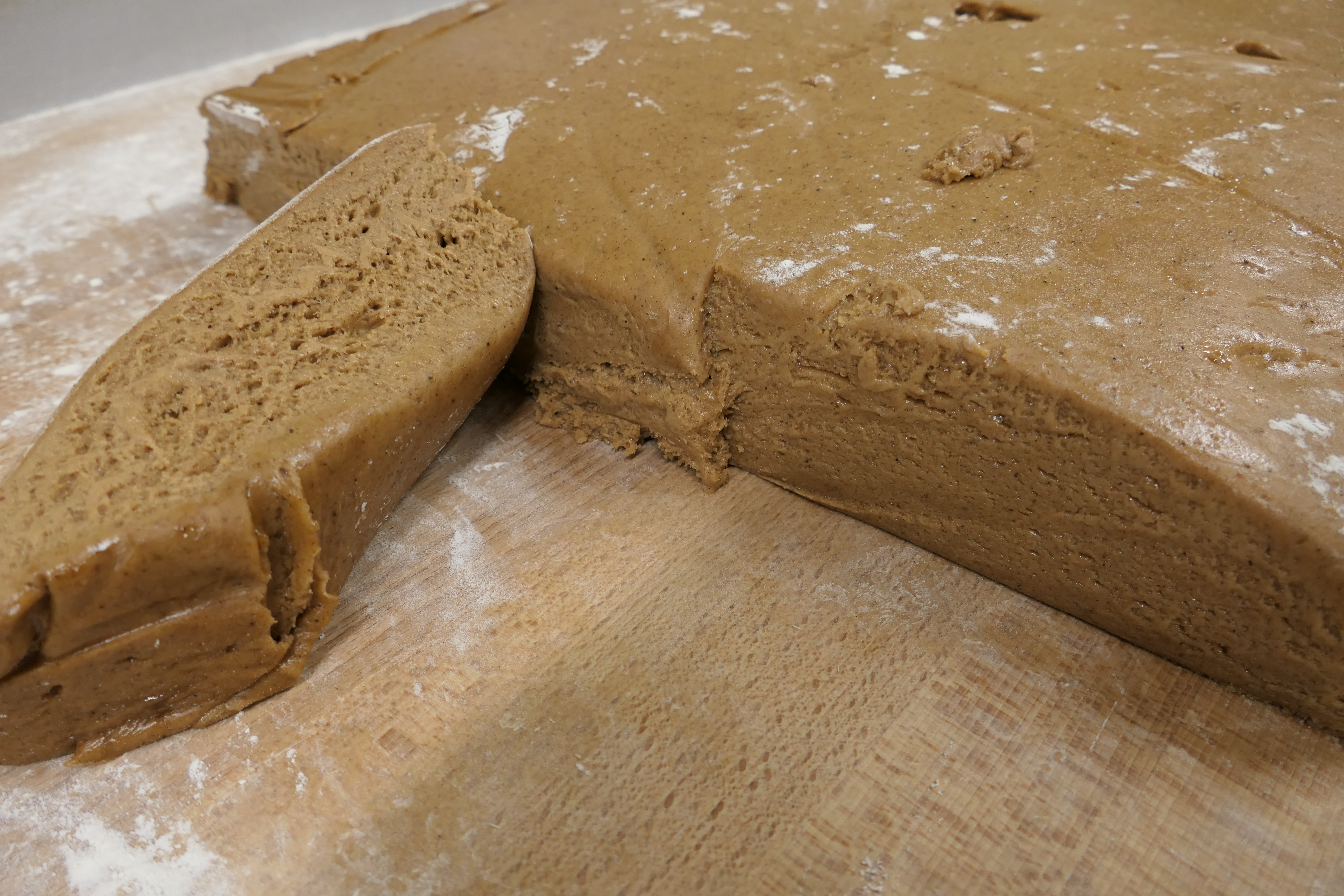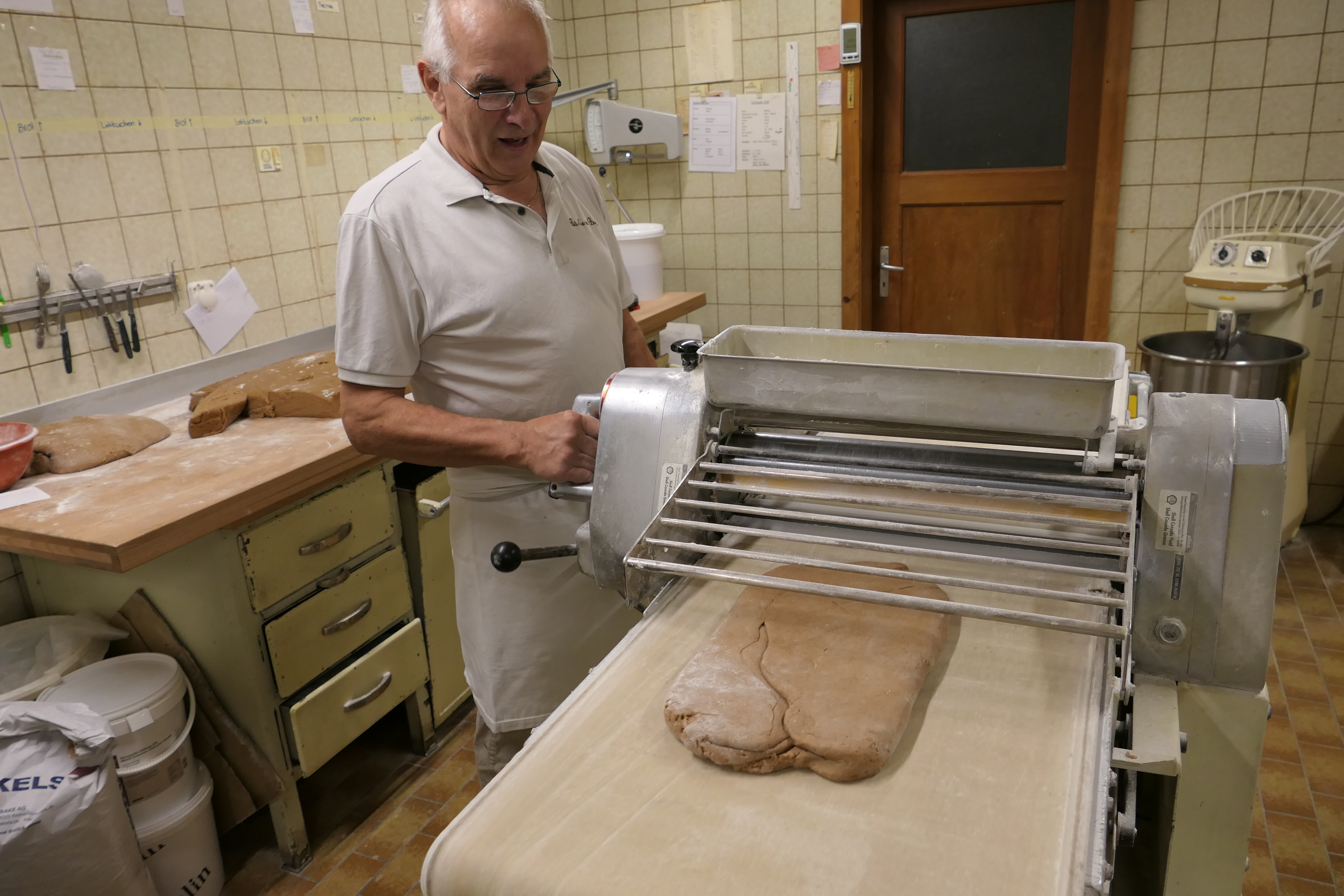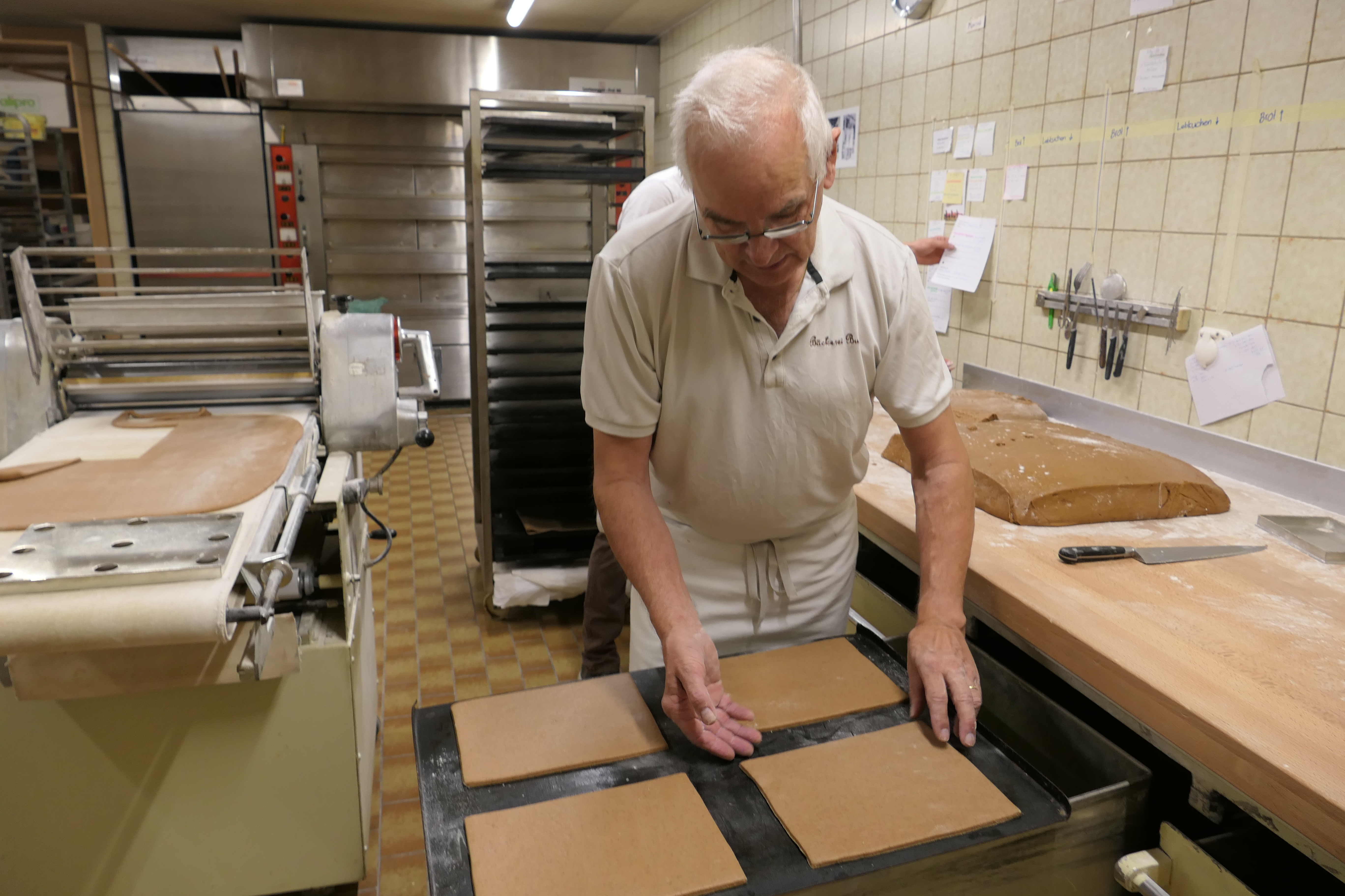 Der junge Familienvater führt mit seiner Frau Laurence die Bäckerei Buchs im freiburgischen Jaun in vierter Generation. Unterstützt werden sie in der Backstube von Vater Michel und drei Angestellten, beim Verpacken der Lebkuchen auch von Mutter Iris und zwei Verkäuferinnen. Bis vor Weihnachten werden sie zwei bis drei Tonnen ungefüllte Lebkuchen und Schnittlebkuchen, gefüllt mit einer Mandel- oder Haselnussmischung backen. «Danach sind es vorwiegend noch Kundenaufträge – spätestens im Februar oder März ist jedoch Schluss, wir wollen unseren Lebkuchen als saisonale Spezialität bewahren», begründet Eric Buchs die befristete Herstellung.