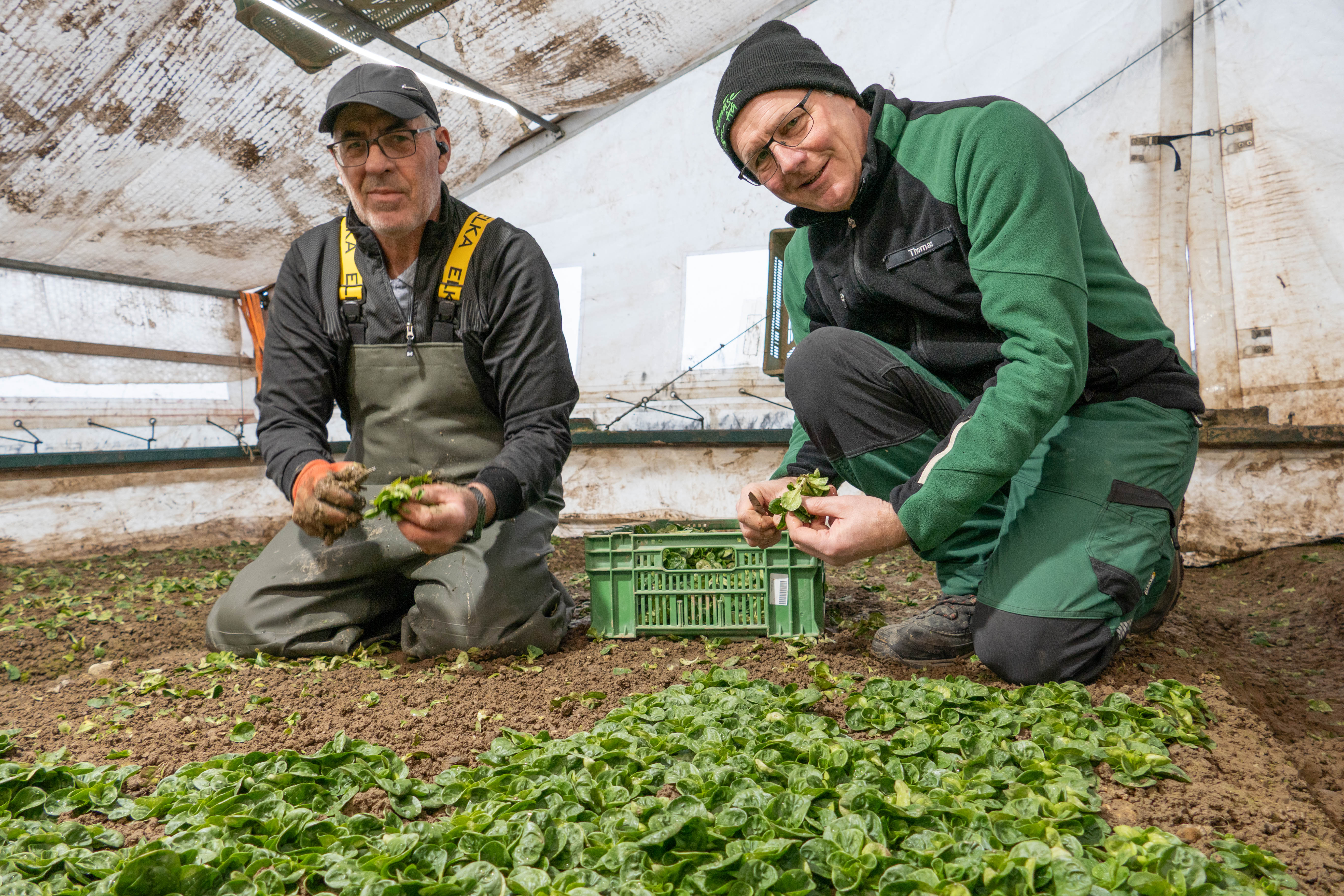 Während es viele andere Landwirtschaftsbetriebe im Winter ruhig angehen lassen, herrscht auf dem Gemüsebaubetrieb der Familie Käser Hochbetrieb. In der Packerei steht die Maschine, welche auf dem Fliessband Kartonschalen des Detailhandels mit je 105 Gramm Nüsslisalat befüllt. Vor Weihnachten stiess diese bei der Leistungskapazität erstmals an ihre Grenzen. Rund 40 Arbeiterinnen und Arbeiter, vornehmlich aus Polen und Portugal, arbeiten auch in den Wintermonaten auf dem Betrieb. Vor den Feiertagen gilt für diese eine «Feriensperre». In besonders intensiven Phasen oder bei Personalknappheit greift auch das Führungsteam um Thomas Käser mit Partnerin Doris und Sohn Roman zum Erntemesser und setzt sich in den geheizten Zelten neben die Mitarbeitenden auf die Knie. «Unsere Mitarbeitenden sollen jeden Moment spüren, wie wichtig diese Arbeit für uns ist», erklärt er. Ausgehen wird ihnen diese nicht so schnell.