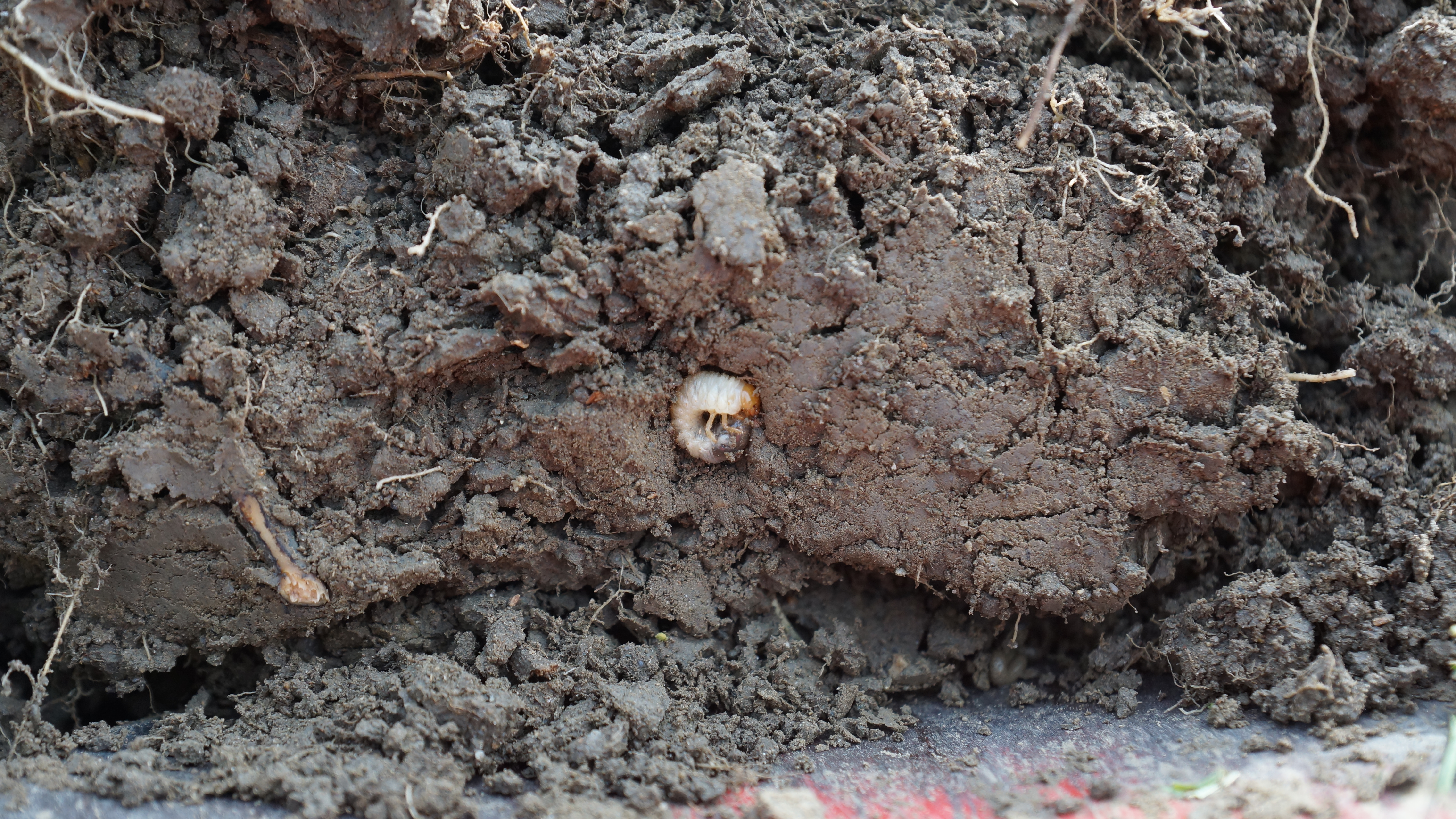 Das Finden der Larven des Japankäfers ist eine Herausforderung. Sie vergraben sich zwischen fünf und 20 Zentimetern unter der Erde. Um sie bei einem Verdacht zu finden, ist es nötig, grosse Teile des Bodens umzupflügen – ein kostspieliges und destruktives Unterfangen.