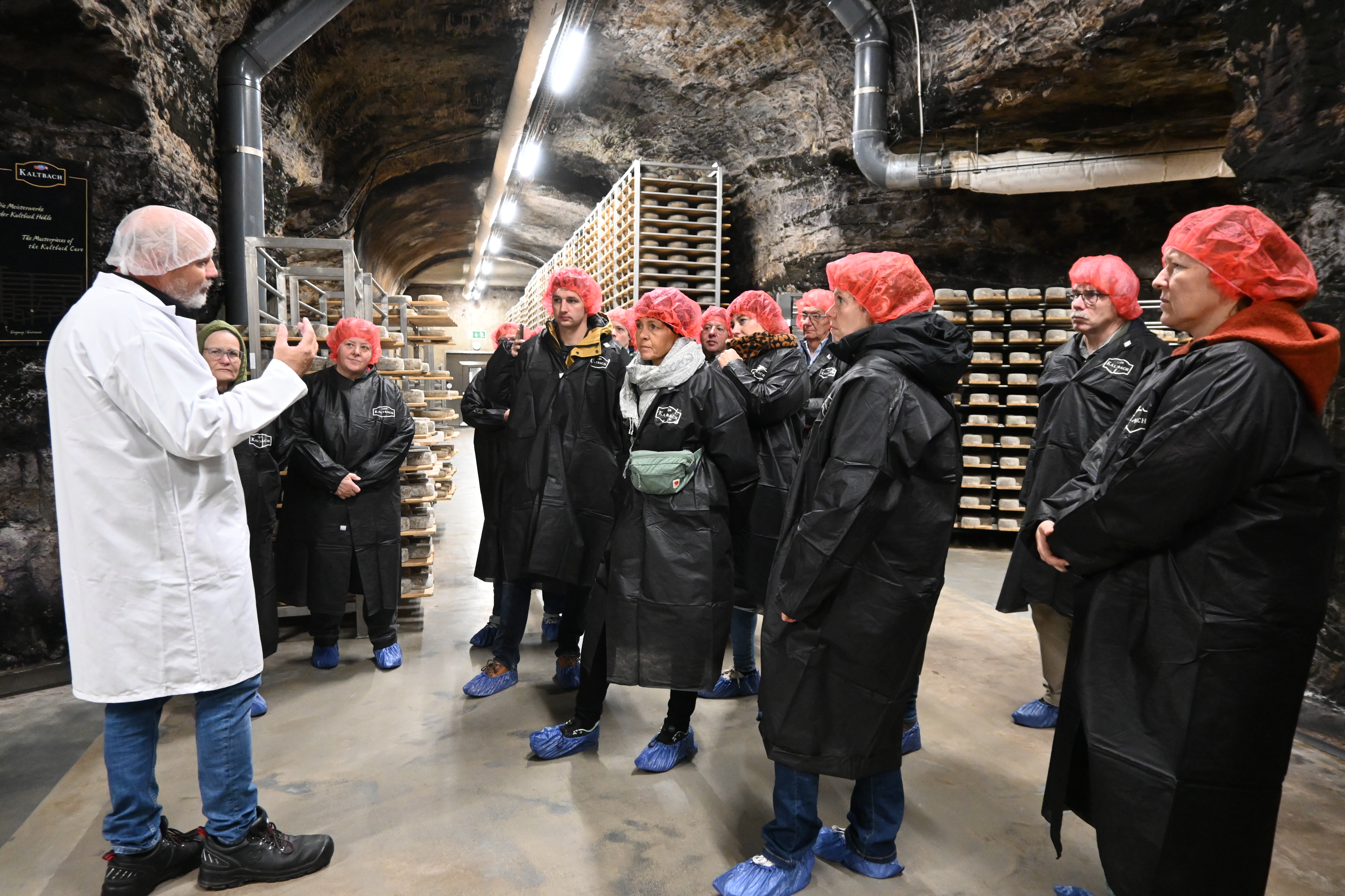 Die damaligen Käsemeister lernten schnell mit den natürlichen Bedingungen der Höhle umzugehen. «Fühlt ihr, was der Unterschied ist zu einem Käsekeller?», fragt der Käsemeister während der Tour durch die Höhle. «In der Kaltbachhöhle haben wir eine enorme Luftfeuchtigkeit, weil das Wasser überall heraustritt», erklärt er.