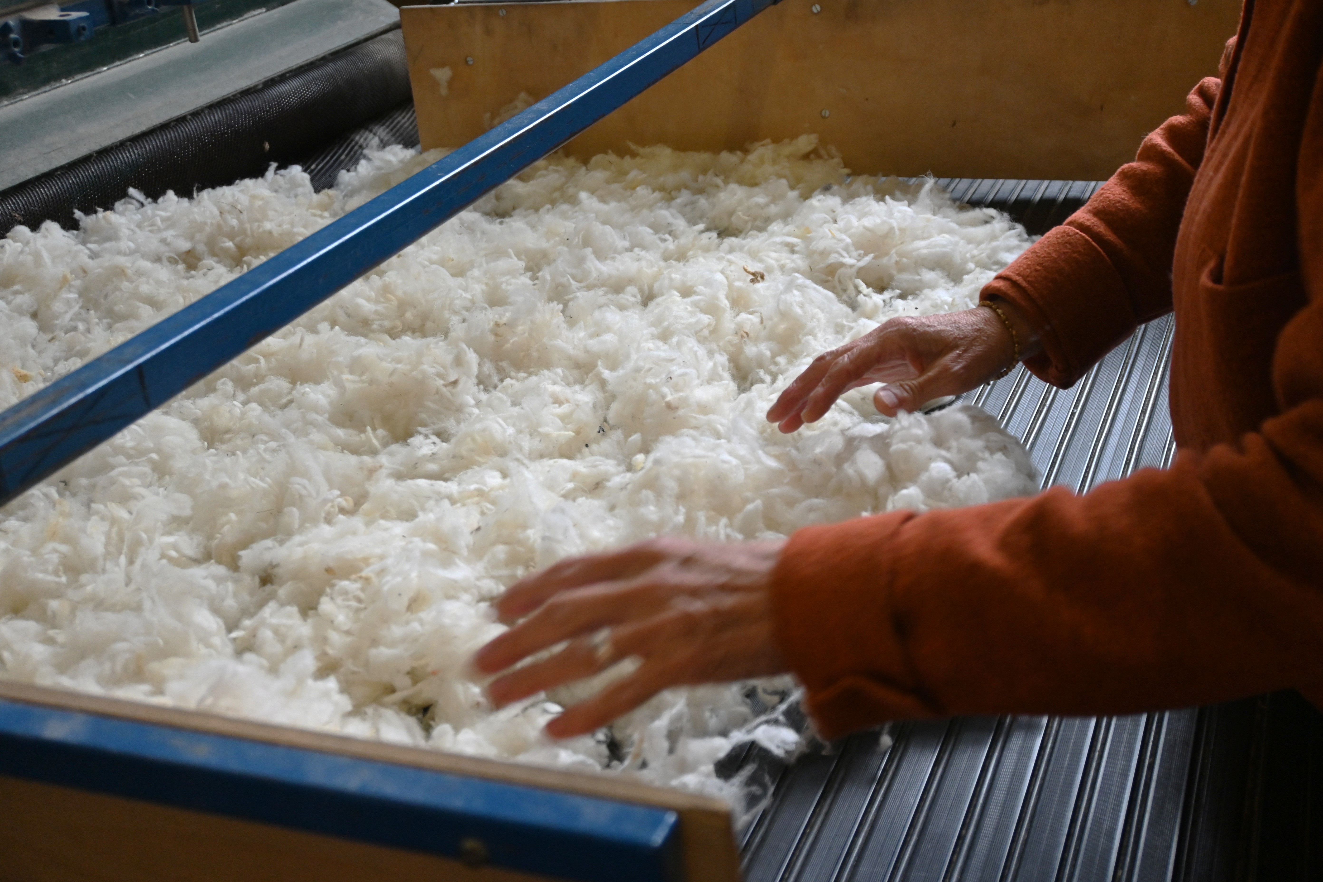 Aus dem Wollvlies werden Duvets und Bettauflagen hergestellt.