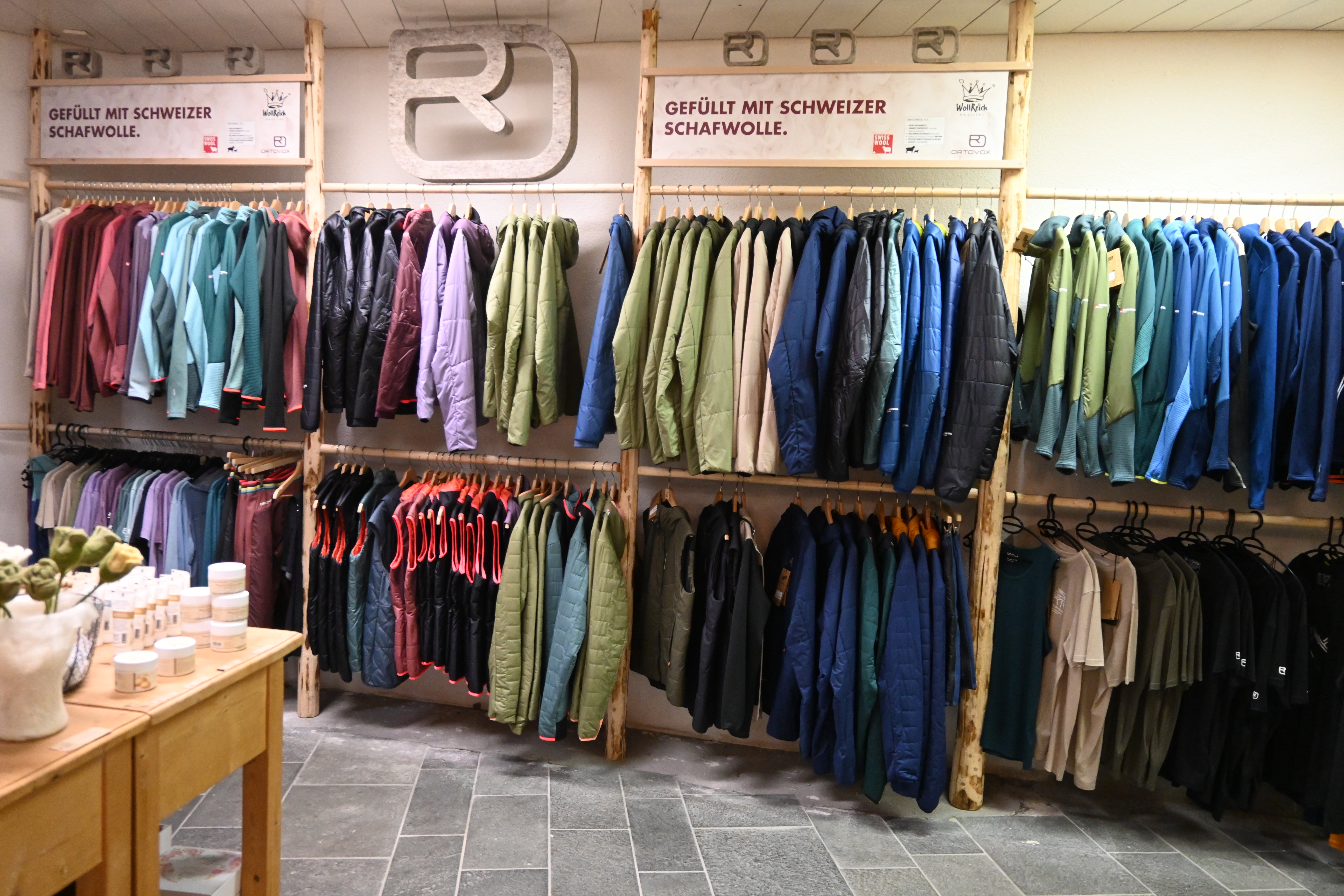 Die weichen Wollkugeln sind das Herzstück der Kissen, die das Wollreich herstellt. Die Produktepalette vom Wollreich ist stattlich: Bettwaren wie Duvets, Kopfkissen, Seitenschläferkissen aber auch Lagerungskissen für Babys oder Stillkissen in allen Farben Schmücken den Wollreich-Laden im Dorf Meiringen.